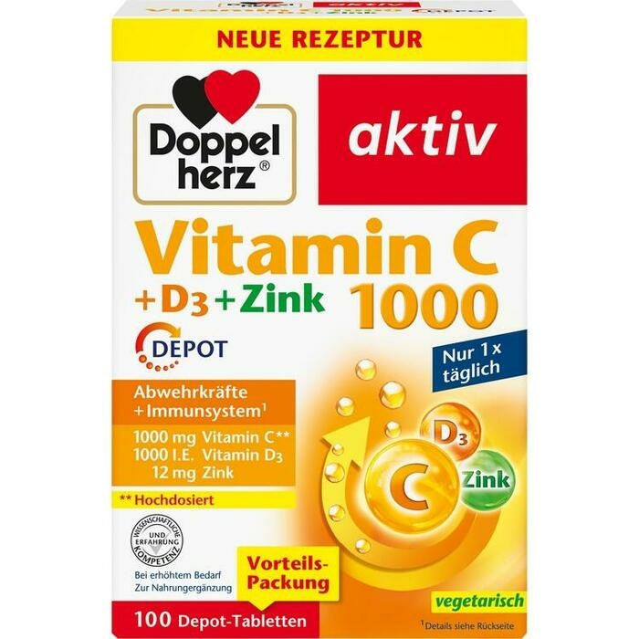 DOPPELHERZ Vitamin C 1000+D3+Zink Depot Tabletten